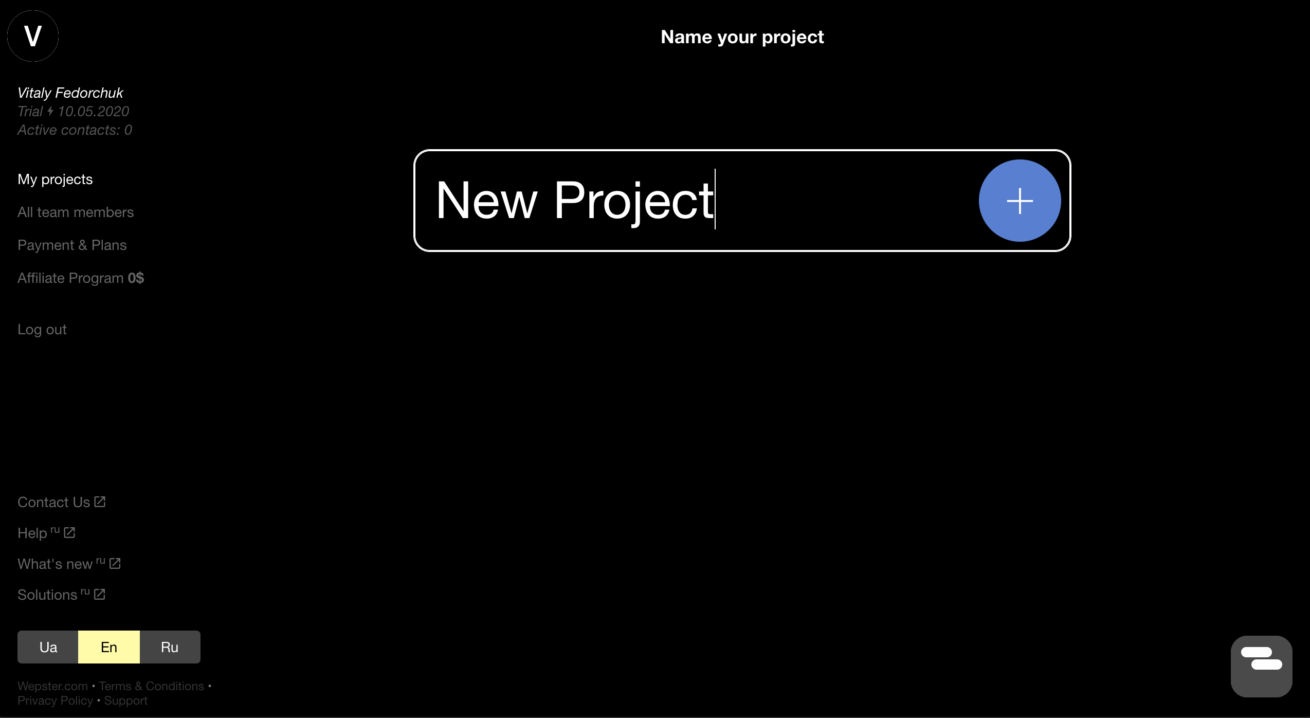 Щоб додати ще один проект на сторінці «Мої проекти», натисніть кнопку справа вгорі.