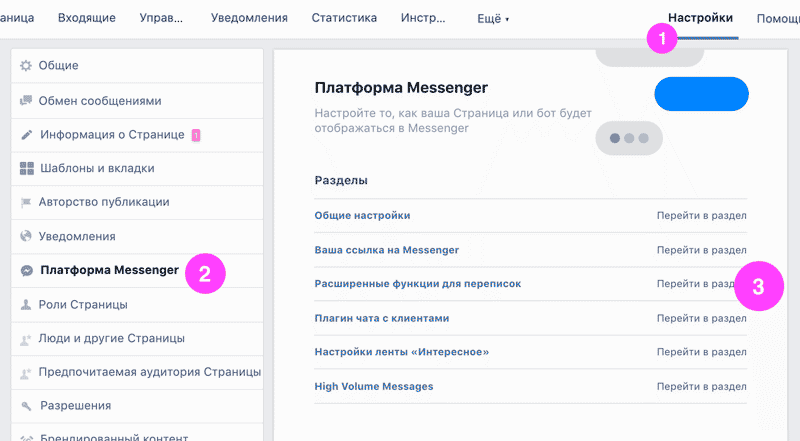 - Виберіть ліворуч пункт «Платформа Messenger»;