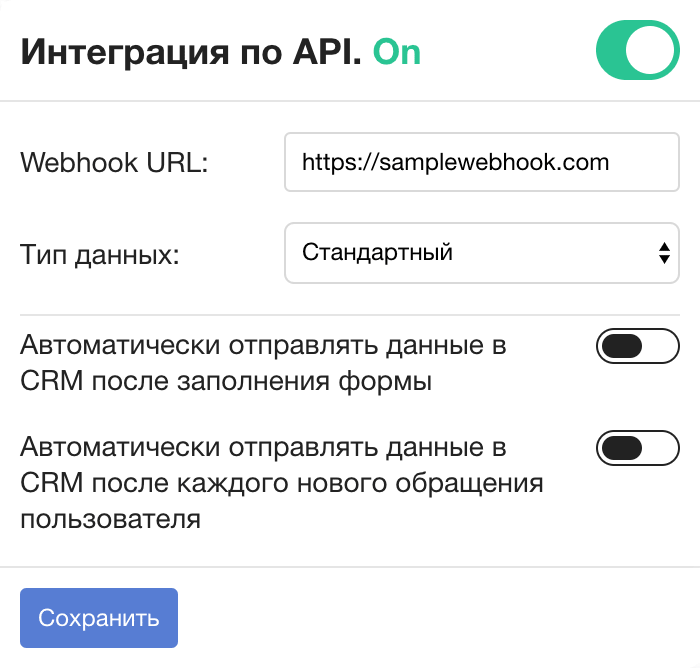 Налаштування Автоматично надсилати дані до CRM після заповнення форми включає автосинхронізацію. Докладніше нижче